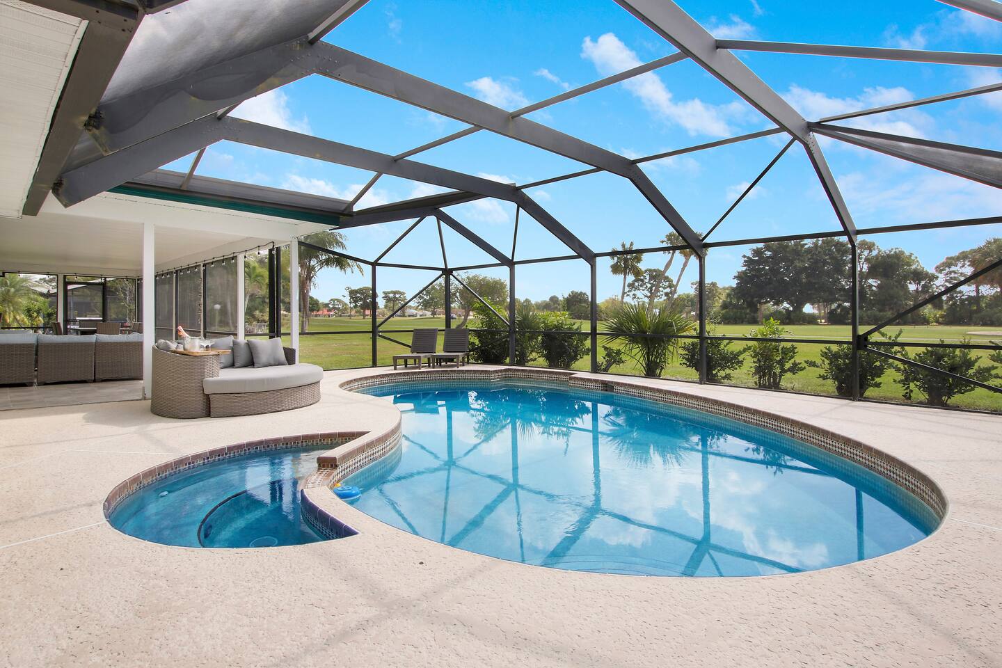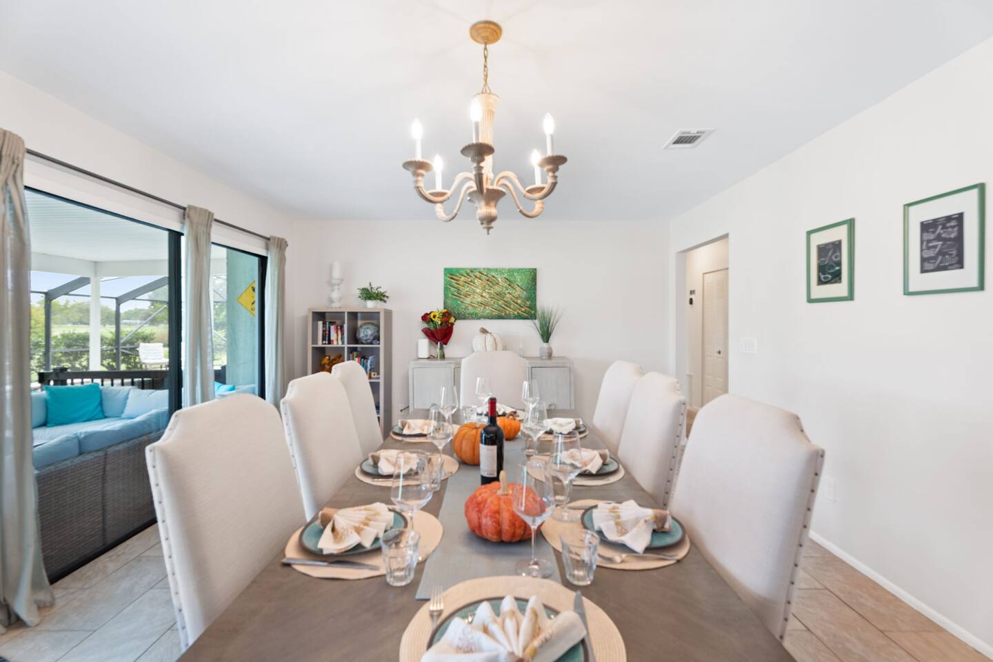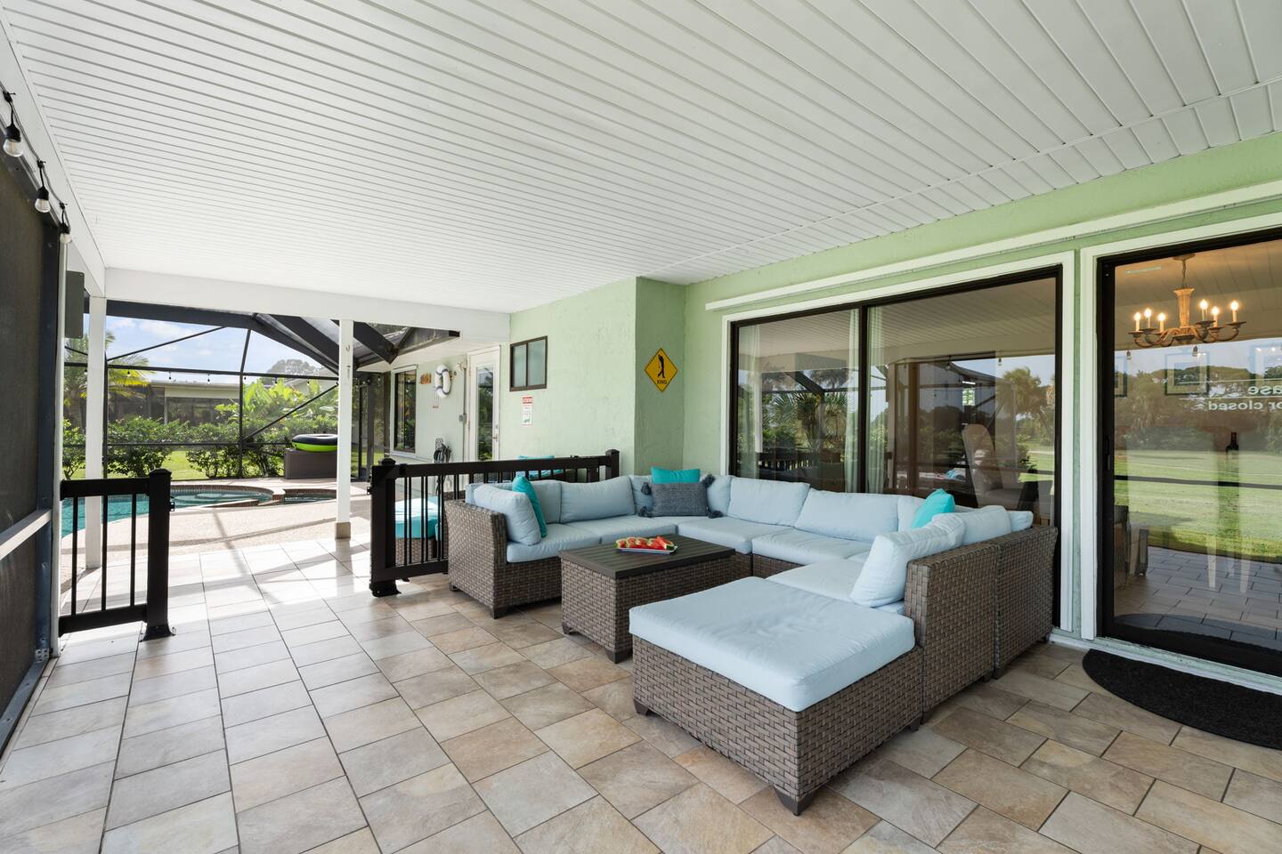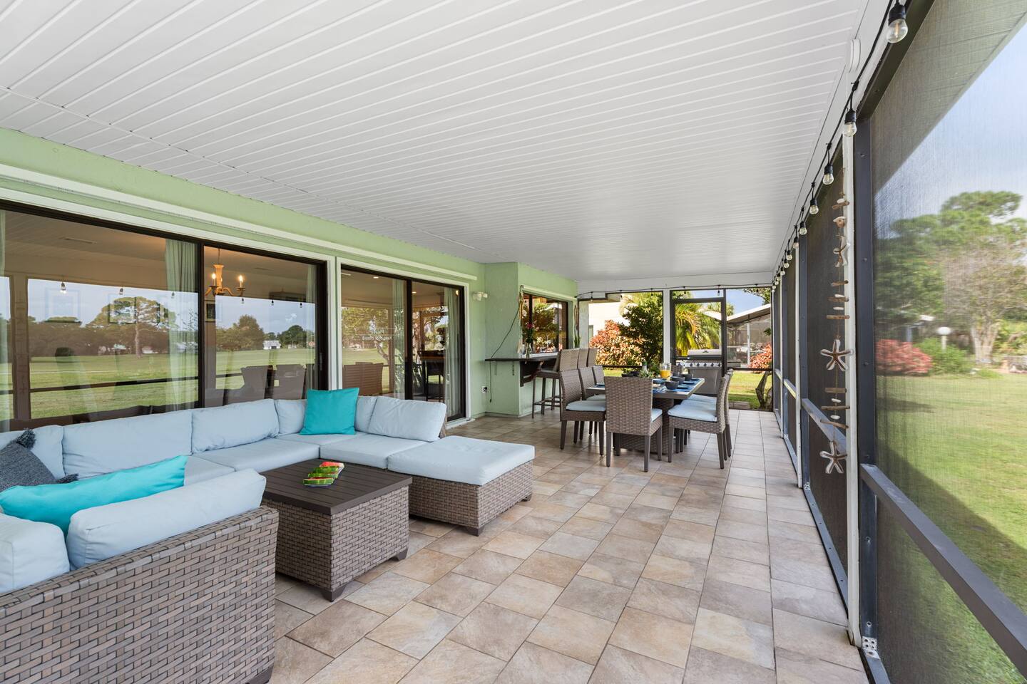 Welcome to your Golfer’s Dream Retreat, a bright and spacious home that blends resort-style comfort with homelike ease. Overlooking The Saints Golf Course, every window frames peaceful green views and Florida sunshine. Inside, four beautifully appointed bedrooms and two modern bathrooms offer plenty of space for families, golf groups, or friends traveling together. The fully stocked kitchen, large dining area, and open-concept living room with a smart TV make gathering effortless. Step outside to your screened-in patio and private pool oasis—perfect for morning coffee, lazy afternoons, or sunset dinners fresh off the grill. The pool and spa can be heated for year-round enjoyment. With family-friendly touches, beach gear, and thoughtful amenities throughout, this home is designed to make every stay seamless, relaxing, and unforgettable. Whether you’re here for golf, sunshine, or simply slowing down—you’ll find everything you need right here.