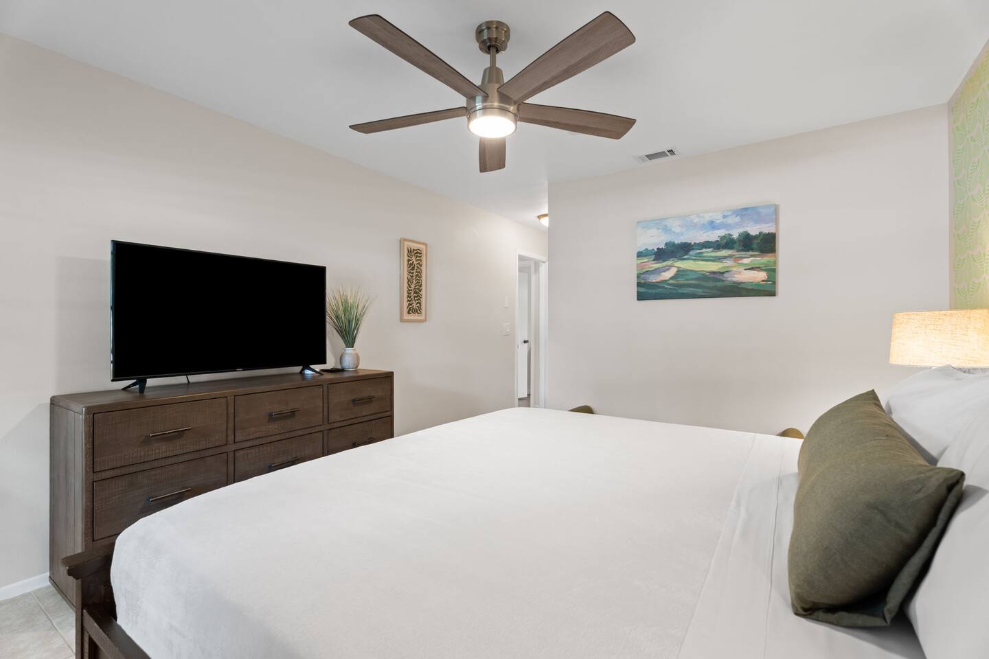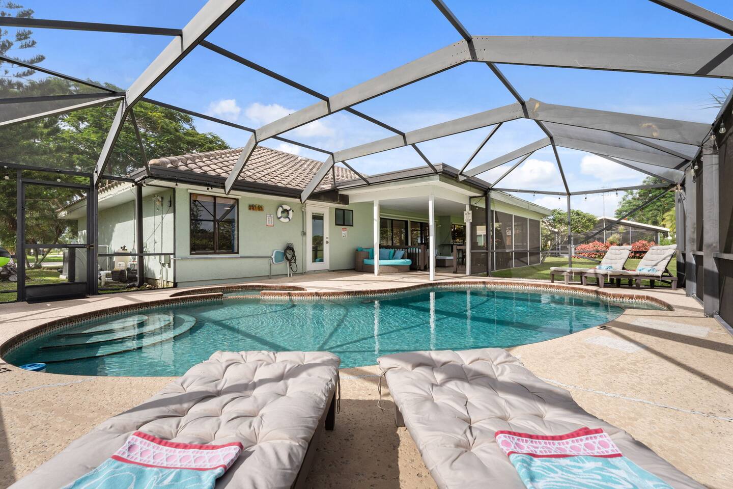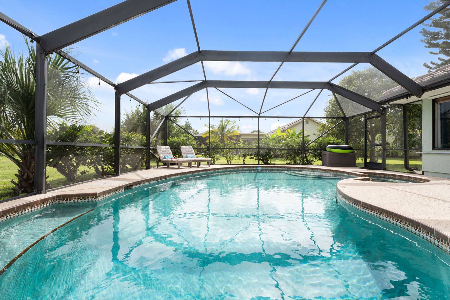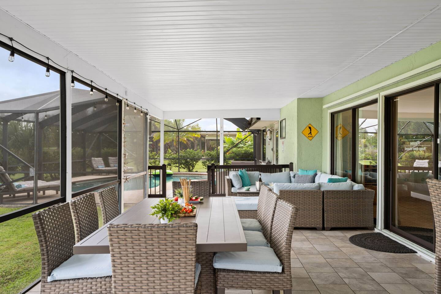 Welcome to your Golfer’s Dream Retreat, a bright and spacious home that blends resort-style comfort with homelike ease. Overlooking The Saints Golf Course, every window frames peaceful green views and Florida sunshine. Inside, four beautifully appointed bedrooms and two modern bathrooms offer plenty of space for families, golf groups, or friends traveling together. The fully stocked kitchen, large dining area, and open-concept living room with a smart TV make gathering effortless. Step outside to your screened-in patio and private pool oasis—perfect for morning coffee, lazy afternoons, or sunset dinners fresh off the grill. The pool and spa can be heated for year-round enjoyment. With family-friendly touches, beach gear, and thoughtful amenities throughout, this home is designed to make every stay seamless, relaxing, and unforgettable. Whether you’re here for golf, sunshine, or simply slowing down—you’ll find everything you need right here.