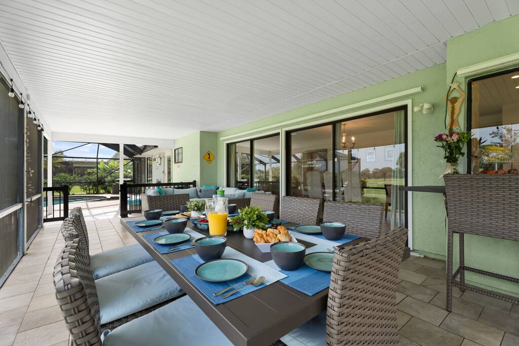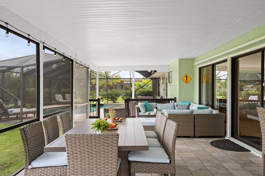 🔥 Pool Heater: If you’d like the pool heater activated, please let us know in advance so we can adjust it to your desired temperature. Cost: $20 per every 5°F increase, plus $20 to maintain the temperature for the rest of the stay. The charge will be sent the last day of your stay. 💧 Water Level Maintenance: Please monitor the water level in the pool. If it’s low, use the hose by the pool to refill. The correct water level is midway up the skimmer (the rectangular opening on the pool wall facing the golf course). Maintaining this level helps prevent equipment damage—thank you for your attention to this! Pool Service: Our professional pool service team visits every Wednesday to clean and maintain the pool. 💡 Lighting Instructions All light switches are labeled for ease of use. To turn on the string lights, plug in the green cord located on the side of the bar table. ❤️ We strive to make your stay as comfortable and enjoyable as possible. Please don’t hesitate to reach out if you have any questions or need assistance!