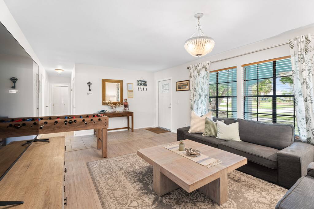 Guests enjoy full and private access to this spacious home—no shared spaces, no interruptions. You’ll have the entire house, screened patio, private pool, and yard all to yourselves, plus free driveway parking for up to 4 cars. Please note: the garage is reserved for storage and not available for guest use. Inside, the home is fully equipped for comfort: 🧑🍳 Kitchen – stocked with cookware, dinnerware, coffee makers (drip + Keurig), toaster, kettle, and dishwasher. 💤 Bedrooms & Baths – fresh linens, plush towels, shampoo, conditioner, body wash, hair dryer, and all essentials. 🏖️ Outdoor & Beach Gear – pool and beach towels, chairs, and sunshade ready for your next outing. Pool heating is available by request (additional fee: $20 per 5°F increase on setup day, then $20/day to maintain). 👶 Family-Friendly Touches – playpen with bedding, high chair, baby bath, and child-safe dinnerware available on request—just let us know before arrival. 🎲 Entertainment for Everyone – a selection of books, games, and coloring materials for both kids and adults ensures there’s always something fun to enjoy. Relax knowing everything you need for a seamless stay is right here—from family comfort to poolside leisure.