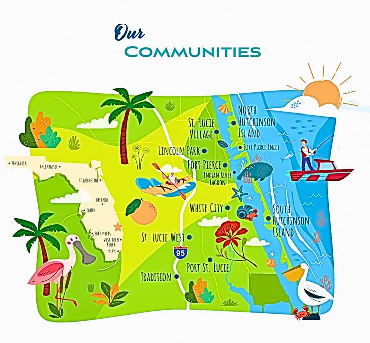 Sandpiper Bay is a quaint and pristine neighborhood which features the Saints Public Golf Course and Port St. Lucie Botanical Gardens. 5 minutes away by car is Sandpiper Bay Resort and Marina an all-inclusive resort on Port Saint Lucie River, which offers the largest Sports School and Academies in the community. The house is 1/4 of a mile just west of US-1. Sandpiper Bay is the perfect place to indulge in Golfing, fishing, diving , beaching and a great place for exploring the natural environment of Port St. Lucie. With its location just a 1/4 of a mile west of US-1 the area is close to Hutchinson Island, only about a 20 min drive from its beautiful beaches. 15-20 min drive to Jensen beach and Stewart, the artsy little beach towns with excellent restaurants and cute shops. The Sandpiper bay area is an ideal place to stay for a laid-back Florida golf and beach vacation. In addition to being right on the Saints golf course, The sandpiper bay golf course is only a 5 min drive away. For the ultimate golf experience visit the close by PGA Village that includes the Wanamaker, Ryder, and Dye courses. The resort also boasts a Family Short Course, which has a mere six holes, perfect for those traveling with children. Book a lesson with a pro, play all 54 holes on the property, or grab a bite at the Taplow Pub, there’s no end to the fun that can be had there. Visit the very quaint and beautiful Port St Lucie botanical gardens only a five minute drive away, or drive 25 mins north to the Heathcote Botanical Gardens spread across 3.5 acres of lush gardens that provide a tranquil and enchanting escape to visitors. This world of tropical foliage is made up of a diverse collection of plants that include palms, ferns, and several native Florida species. However, the chief attraction is the display of bonsai trees, which happens to be the largest public display in the USA. Still, the list doesn’t end there as there’s a butterfly garden, a children’s garden, and a herb garden, among others worth exploring. Fun things to do include of course golfing , kayaking in search of Manatees in the river, fishing off the Riverwalk Boardwalk, and hiking the trails in The Savannas Preserve State Park. Those who favor a little retail therapy will enjoy spending time in The Landing at Tradition, where they’ll also find a slew of top restaurants. Guest interested in learning about the area’s diverse marine life can visit the St. Lucie County Aquarium, found in Fort Pierce, about 17 miles from the heart of Port St. Lucie. Although this is a small aquarium, it offers a lot to visitors, with exhibits that showcase local aquatic species like seahorses, sea turtles, and colorful reef fish.
