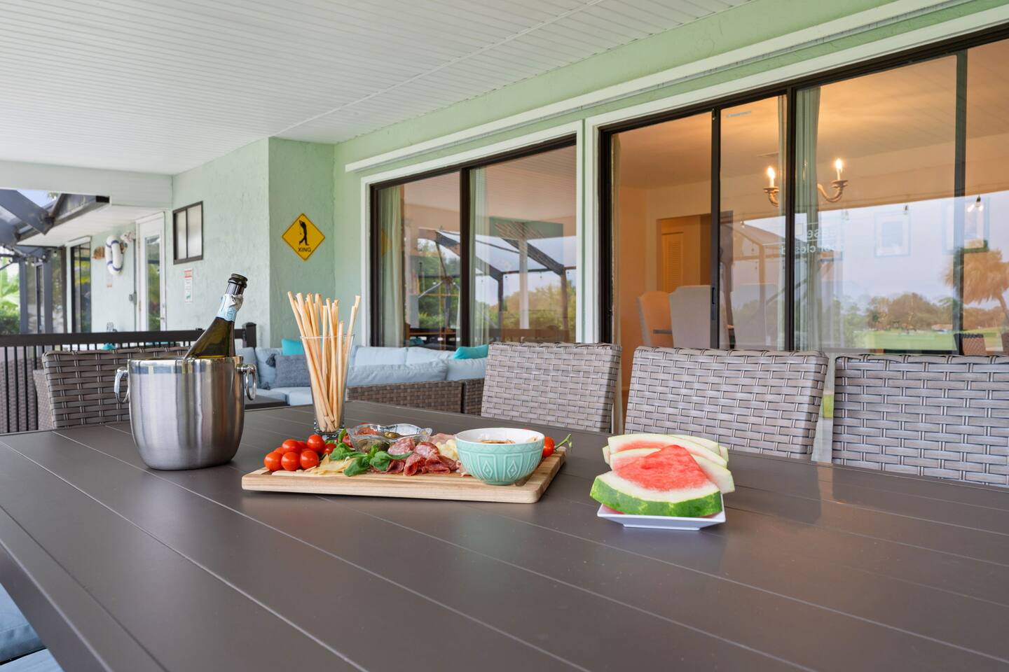 Pool Heater: - If you’d like the pool heater activated, please let us know in advance so we can adjust it to your desired temperature. Cost: $20 per every 5°F increase, plus $20 to maintain the temperature for the rest of the stay. After the bill is paid we will turn on the heat the morning of your arrival. - Water Level Maintenance: Please monitor the water level in the pool. If it’s low, use the hose by the pool to refill. The correct water level is midway up the skimmer (the rectangular opening on the pool wall facing the golf course). Maintaining this level helps prevent equipment damage—thank you for your attention to this! Pool Service: Our professional pool service team visits every Wednesday to clean and maintain the pool. - Lighting Instructions All light switches are labeled for ease of use. To turn on the string lights, plug in the green cord located on the side of the bar table. - We strive to make your stay as comfortable and enjoyable as possible. Please don’t hesitate to reach out if you have any questions or need assistance!